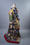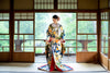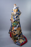 千代見草とは菊の別名であり、松の別名です。 優雅に舞う鶴と生命力あふれる松、愛らしく、丸い菊が咲き誇る様が描かれています。 吉祥文様である亀甲文の中に節ごとの柄を施し、華やかに咲誇る花々とその中を悠々と飛翔する鶴は花嫁様に末永い幸せを運びます。