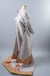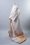 ガーベラの花言葉「希望」。これまでの婚礼衣装をより今風にアレンジし、コーディネートを楽しめる一枚です。 白金の配色をベースに優しいサーモンピンクのガーベラを配して額縁のようなデザインが可愛らしく、優しく華やかな雰囲気の色打掛です。